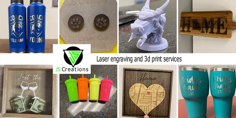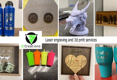 Reach out for custom laser engraving or 3D printing orders, big or small.